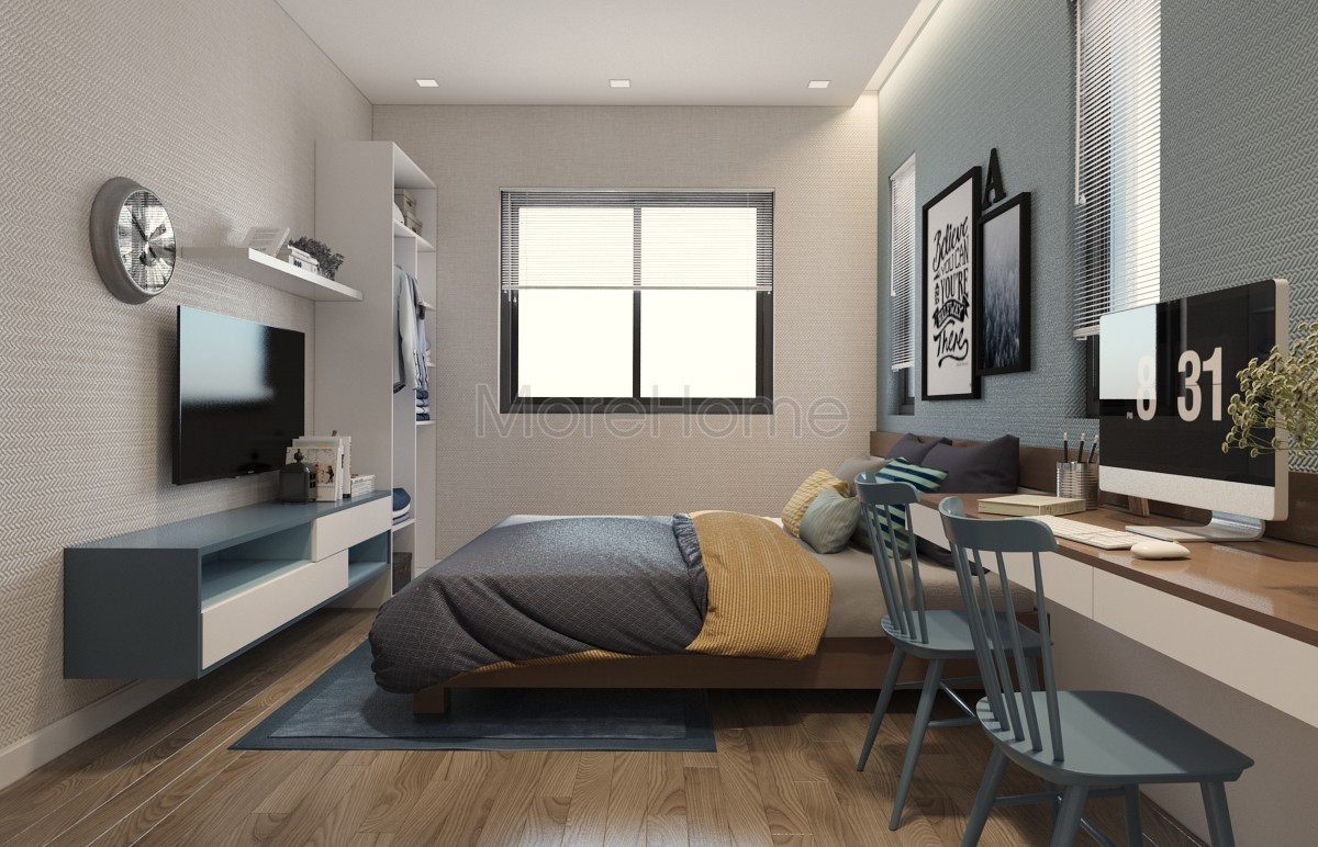 Phòng ngủ thứ 2 được thiết kế cũng đơn giản, tinh tế như vậy. Không chú trong vào những chi tiết cầu kì phức tạp, chỉ cần đơn giản và tập trung vào công năng sử dụng.