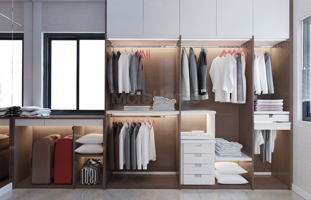 Gia chủ là người coi trọng hình thức bề ngoài cho nên đã thiết kế một không gian thay đồ riêng với hệ thống tủ mở cao cấp, hấp dẫn.