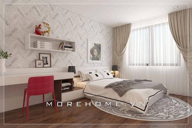 Thiết kế giường ngủ phòng Master đẹp với kiểu dáng gọn gàng, ngăn nắp với những chi tiết không quá cầu kì, gây rối mắt cho người dùng