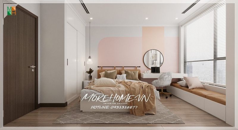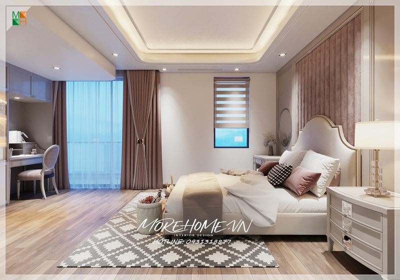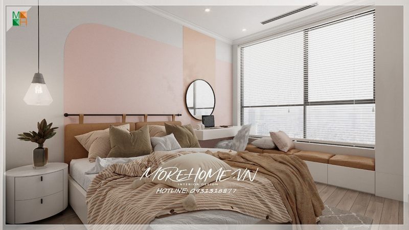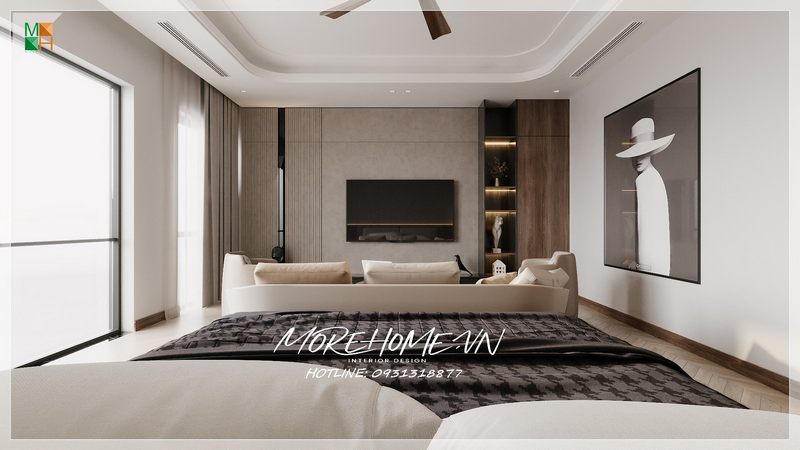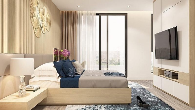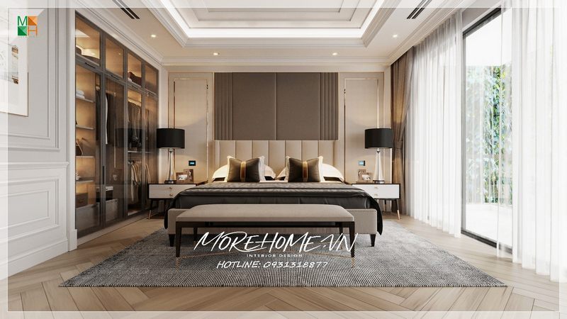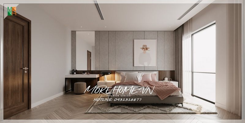 Nhận được ánh sáng bên ngoài bao phủ khắp không gian phòng từ cửa kính trong suốt mang tới cho phòng ngủ không gian thoáng đãng