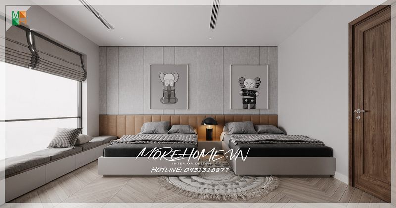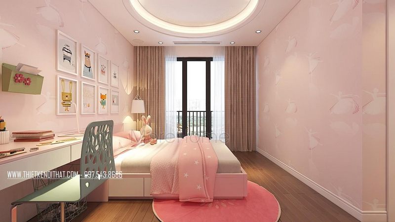 Quan tâm tới sự phát triển và sức khỏe của các bé thì việc thiết kế đón nhận ánh sáng bên ngoài vào bên trong phòng nhờ vào cửa kính trong suốt.
