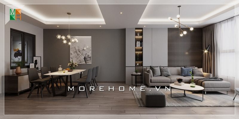 Mẫu thiết kế nội thất cho chung cư hiện đại có những tone màu nhẹ nhàng và ấm áp.